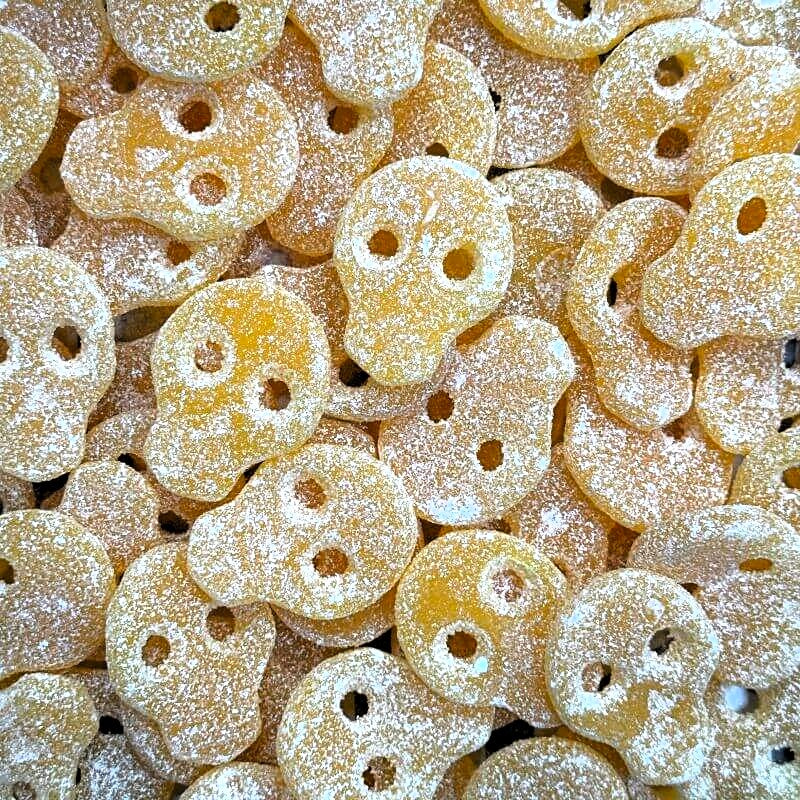 Sirop de glucose, sucre, amidons modifiés ( blé sans gluten , maïs, pomme de terre), acidifiants (acide lactique, acide malique, malate de sodium, acide citrique), arôme naturel, colorants (E100, E160c).